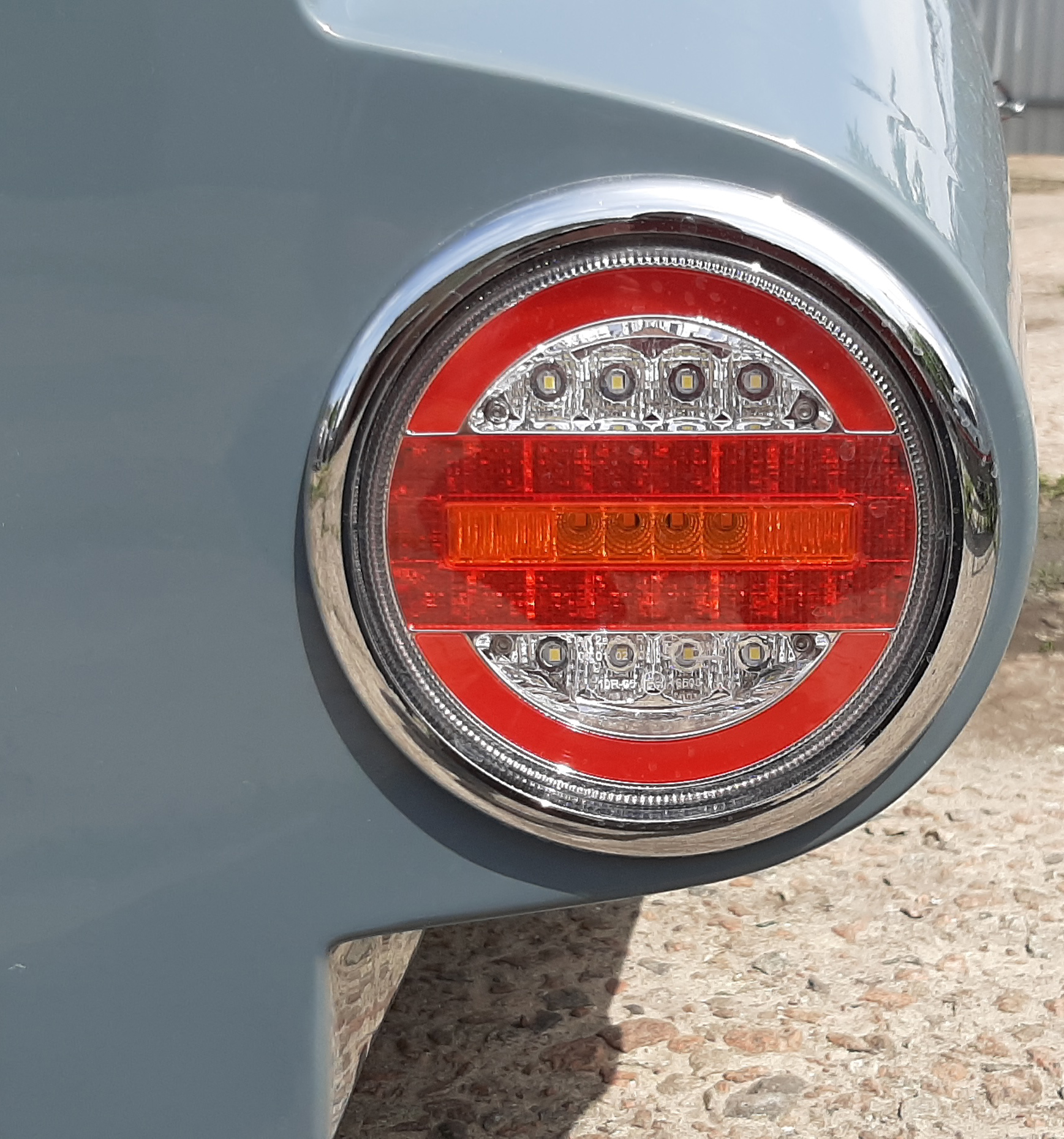 oval, with chrome edges and integrated LED lighting for better visibility of the trailer on the road.