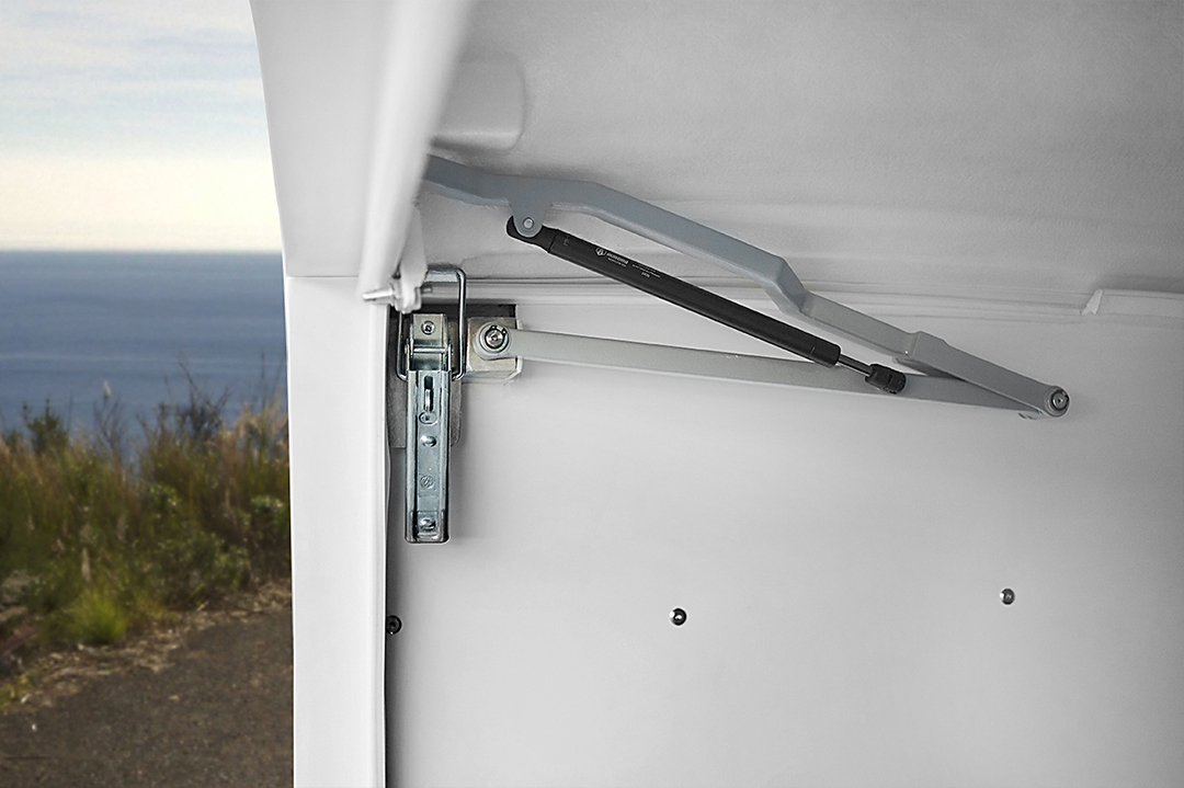 - Pressure gas springs in the mechanism raising and lowering the roof 500 KN and tension gas springs in the mechanism door ramp for raising and lowering the door 900 KN