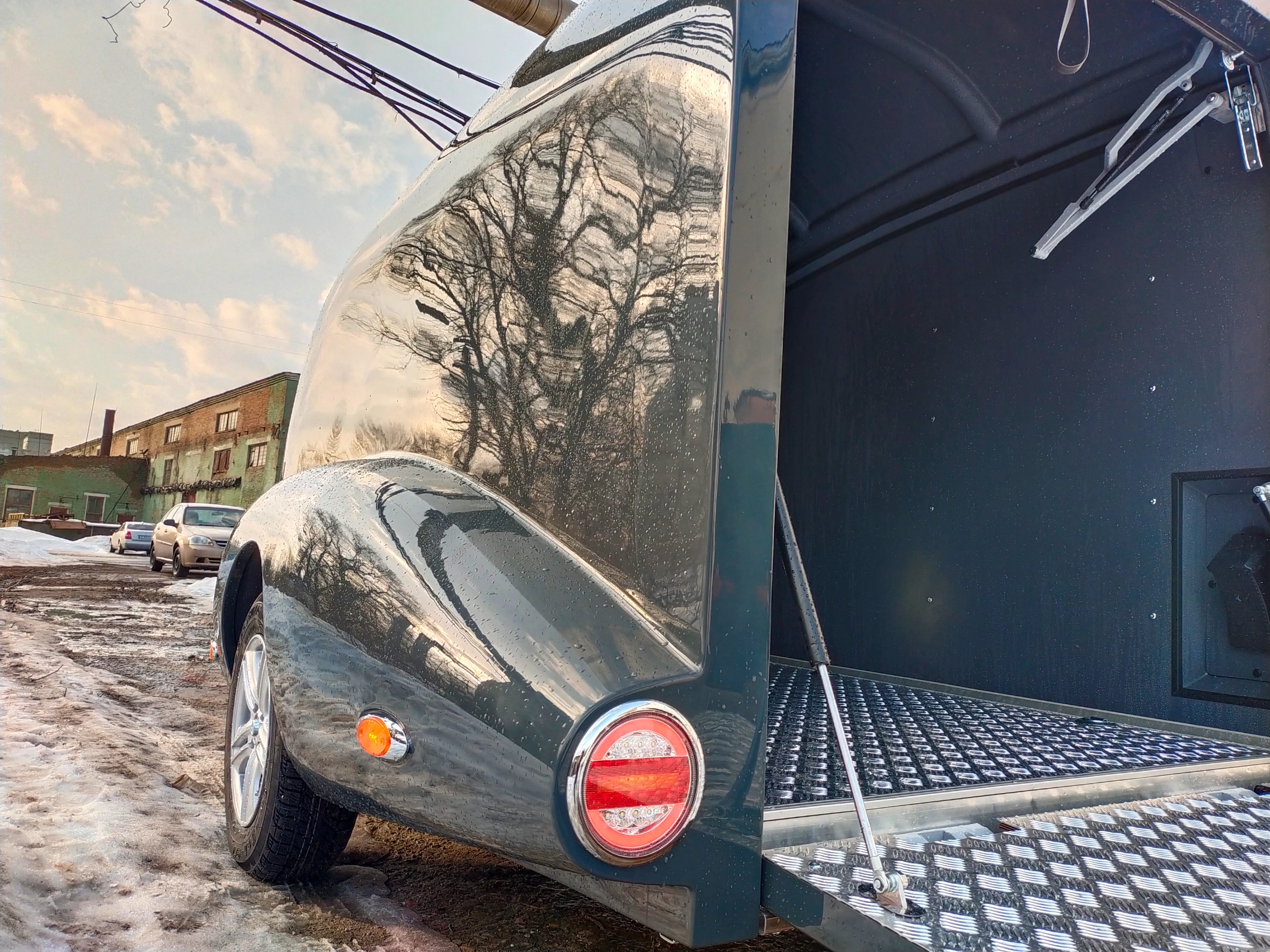 The aerodynamic shape of the trailer reduces fuel consumption and simplifies transport, making it easier to maneuver the towing vehicle.