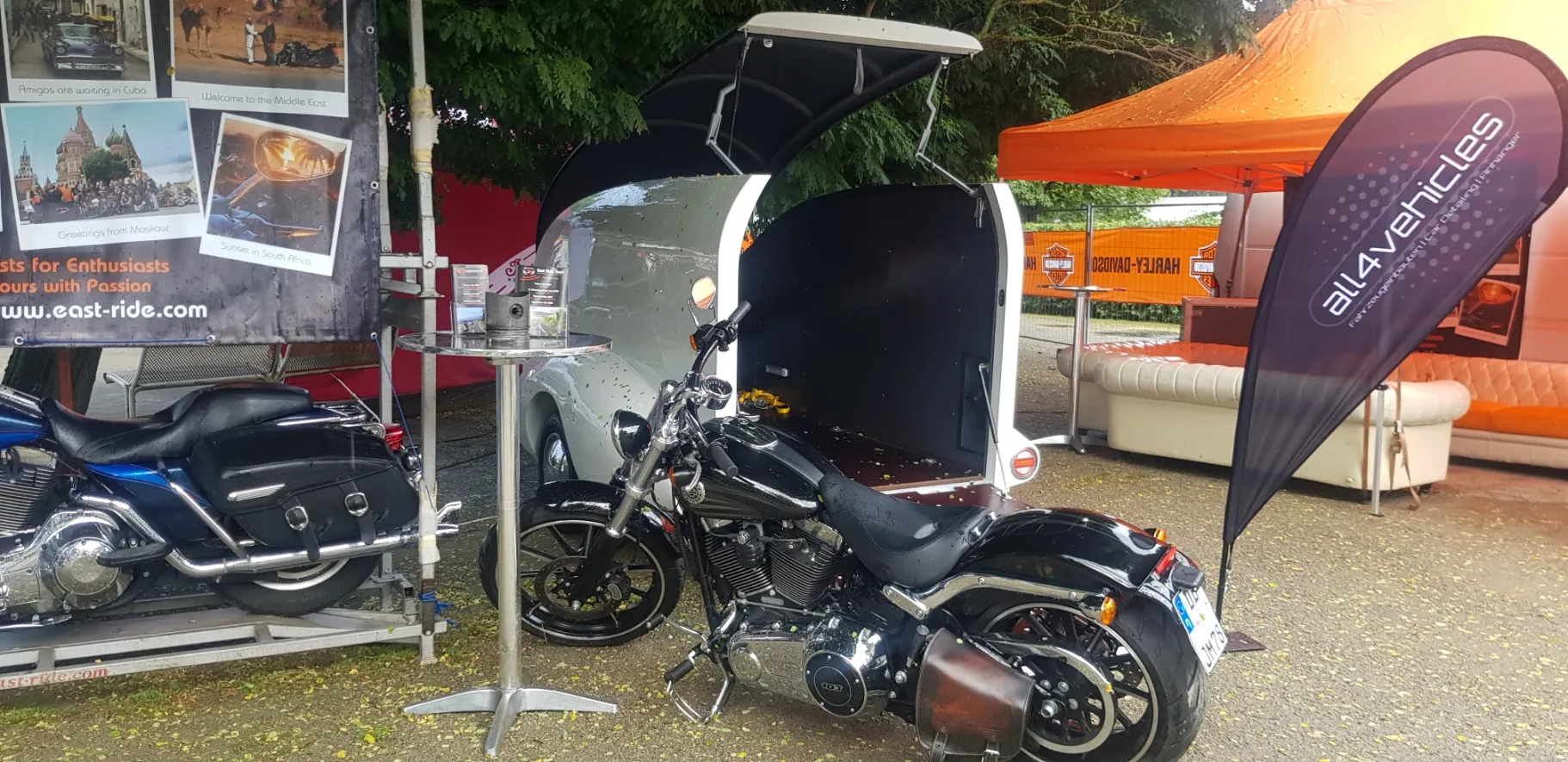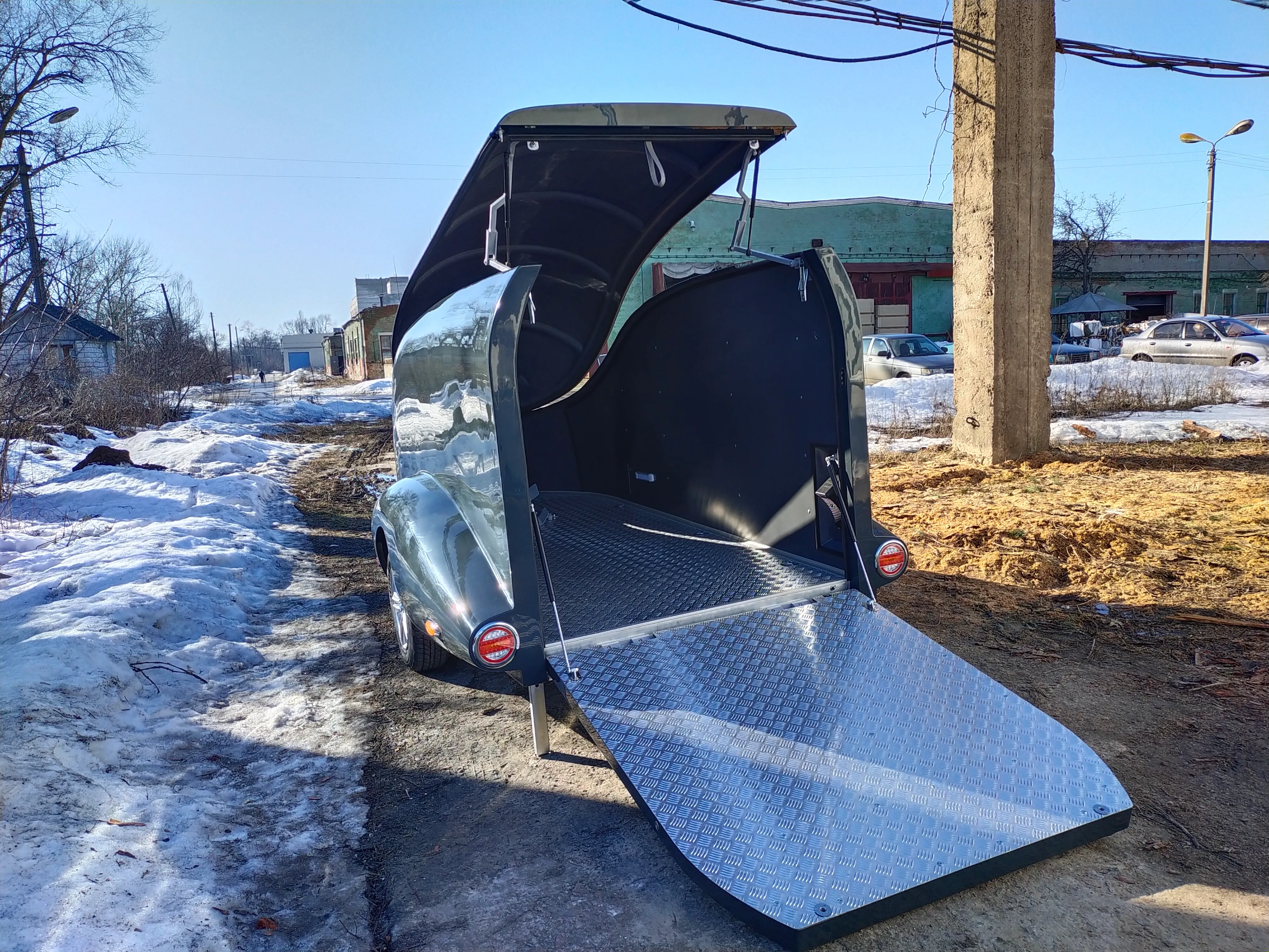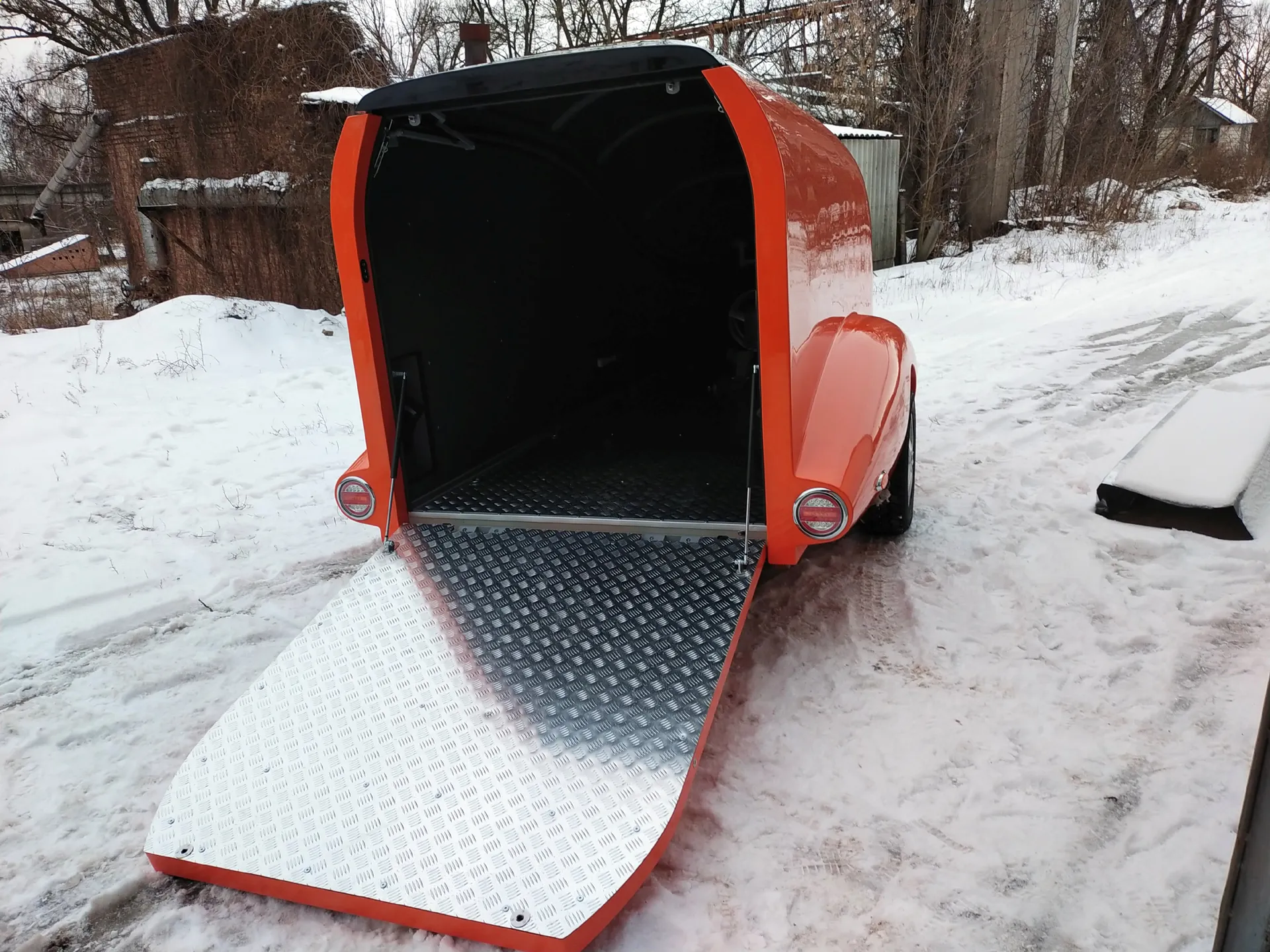 The opening roof allows you to conveniently store and secure the motorcycle in the trailer.