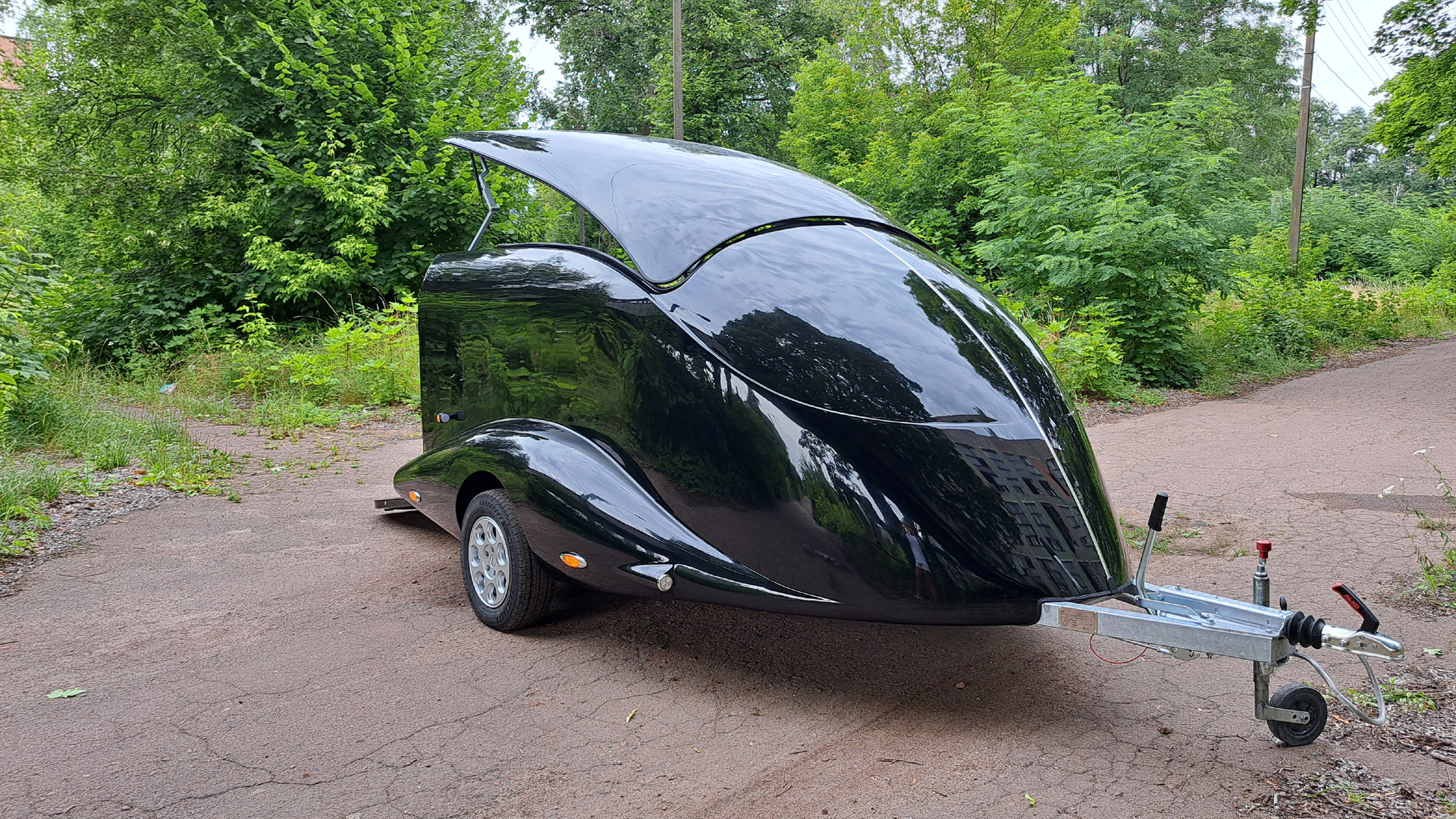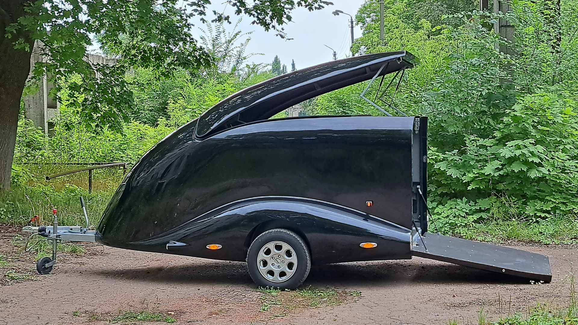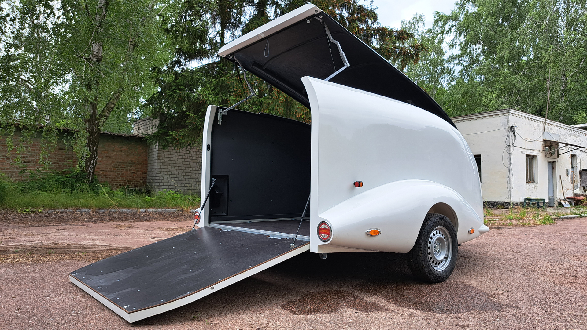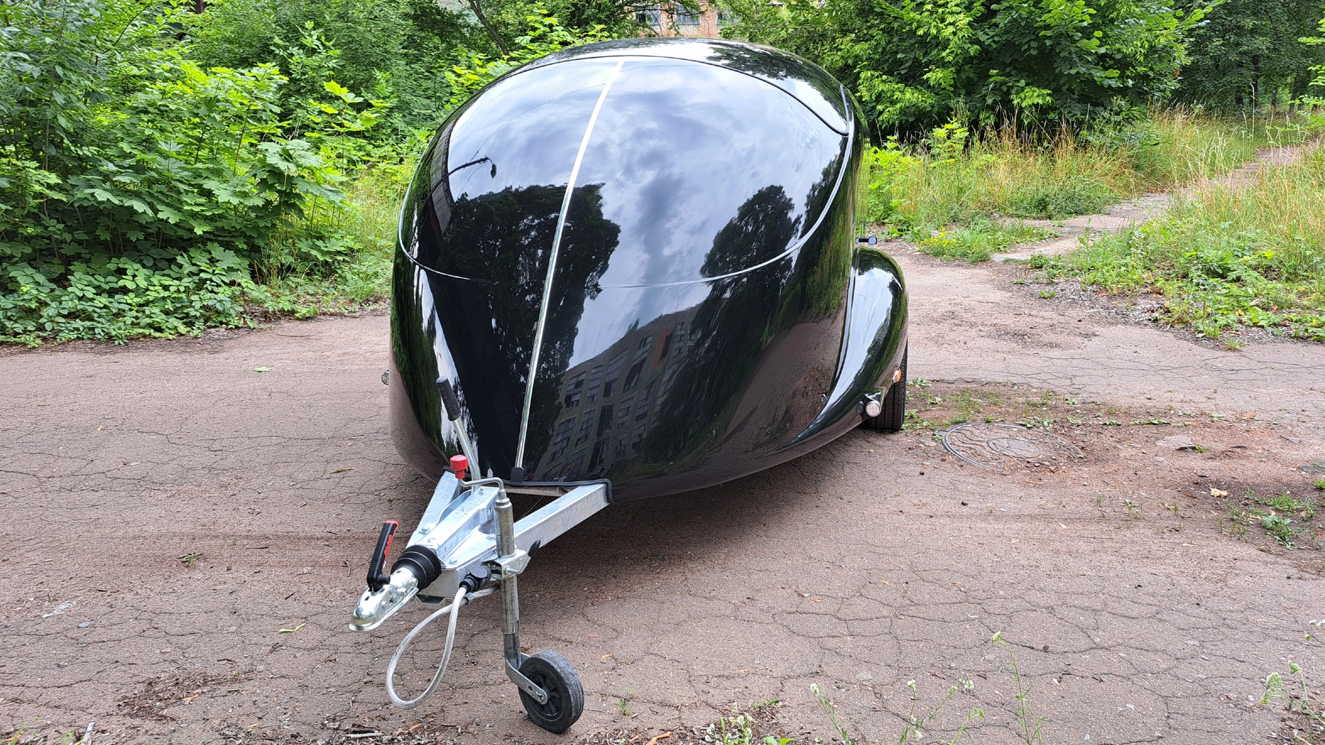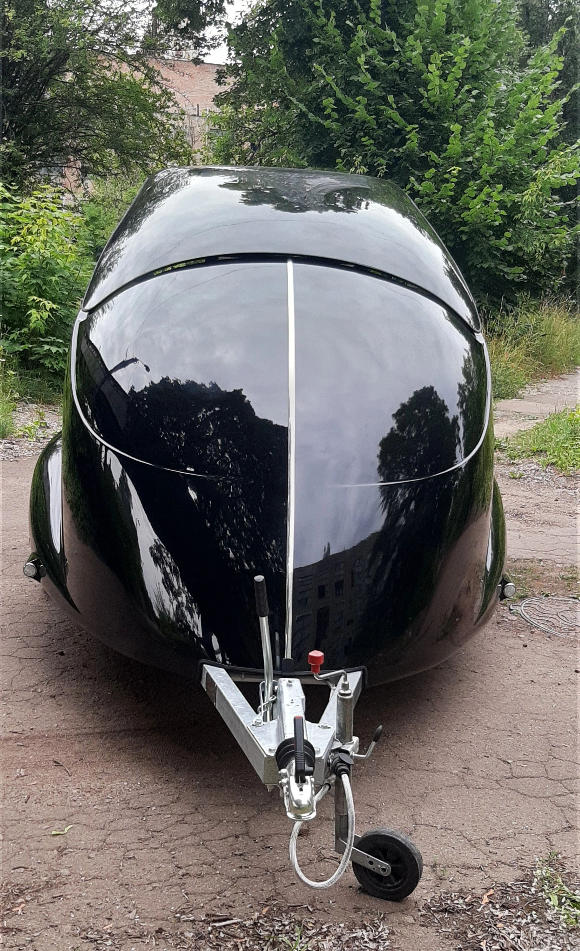 oval, with chrome edges and integrated LED lighting for better visibility of the trailer on the road.